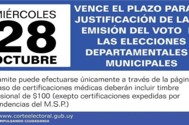 MAÑANA DÍA 28 VENCE INDEFECTIBLEMENTE EL PLAZO PARA JUSTIFICAR EL NO VOTO EN LAS ELECCIONES DEPARTAMENTALES Y MUNICIPALES 27 octubre, 2020