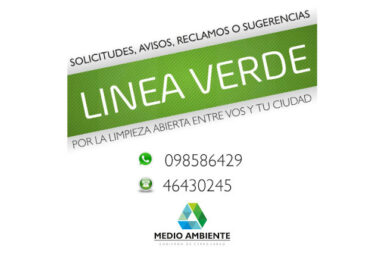 MEDIO AMBIENTE INSISTE CON LA LÍNEA VERDE PARA AGENDAR PEDIDOS DE LA POBLACIÓN: CEL. 098 568429 y/o TEL. 46430245 16 abril, 2020
