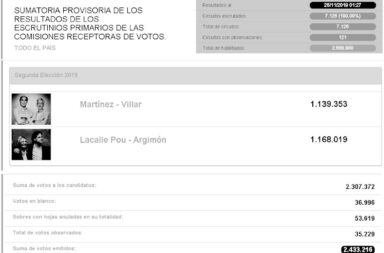 “SE VAN, SE VAN”, FUE EL CÁNTICO UTILIZADO PARA CELEBRAR EL AJUSTADO TRIUNFO DE LACALLE SOBRE MARTÍNEZ 25 noviembre, 2019