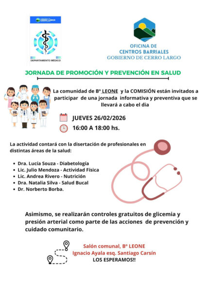 La Intendencia de Cerro Largo puso en marcha una nueva movida de salud comunitaria que apunta a reforzar la prevención y la educación sanitaria en distintos puntos del departamento. Así lo confirmó el profesor Jorge Da Rosa, encargado de la Dirección de Salud, al anunciar el inicio de un ciclo de charlas y controles básicos en coordinación con los centros barriales.